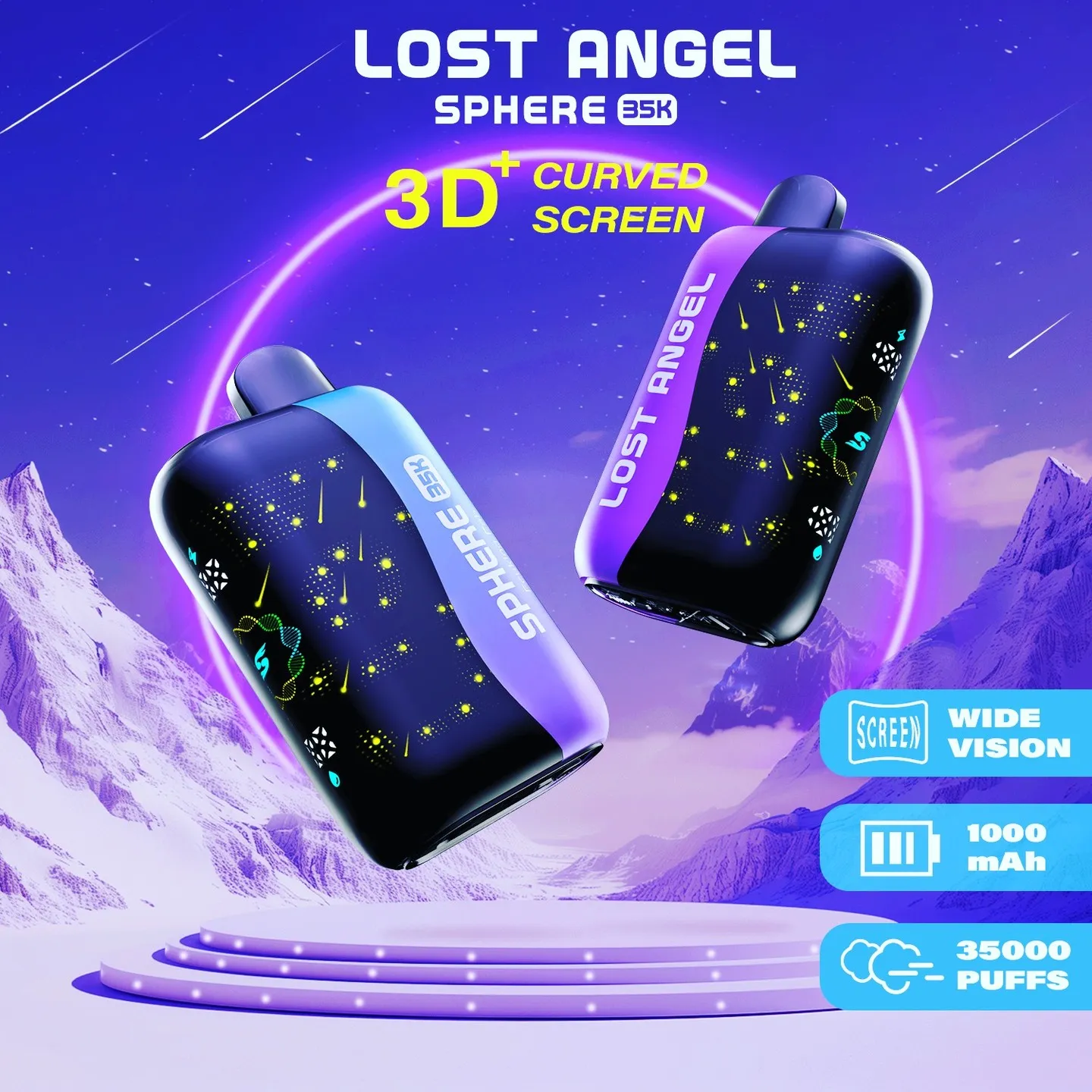 Experience the future of vaping with the Lost Angel Sphere 35K. Enjoy up to 35,000 puffs and a futuristic display. Buy the ultimate long-lasting disposable vape today!
